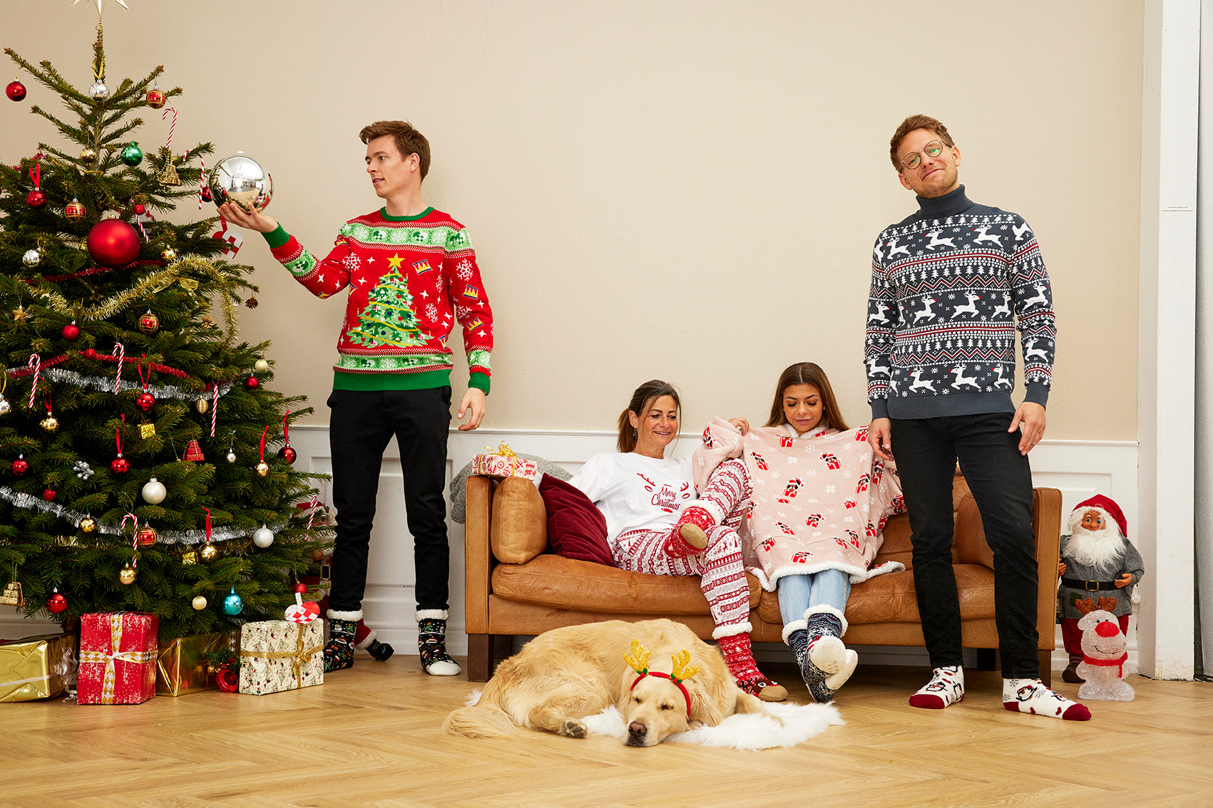 Weihnachtspullover und Weihnachtsaccessoires anbieten.